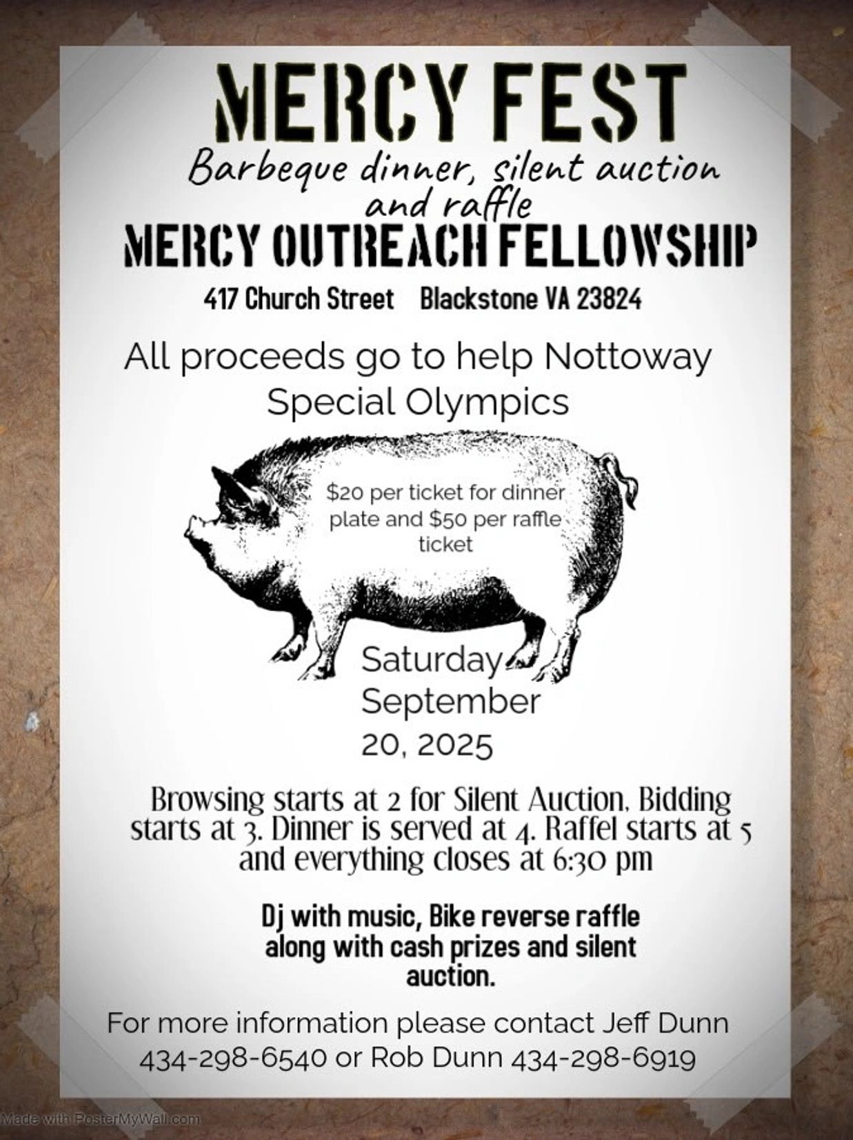 All proceeds raised will be donated to the Nottoway County Special Olympics.